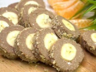 Stačí 2 banány, 200 g tvarohu, mléčná čokoláda můžete servírovat banánovou roládu bez pečení