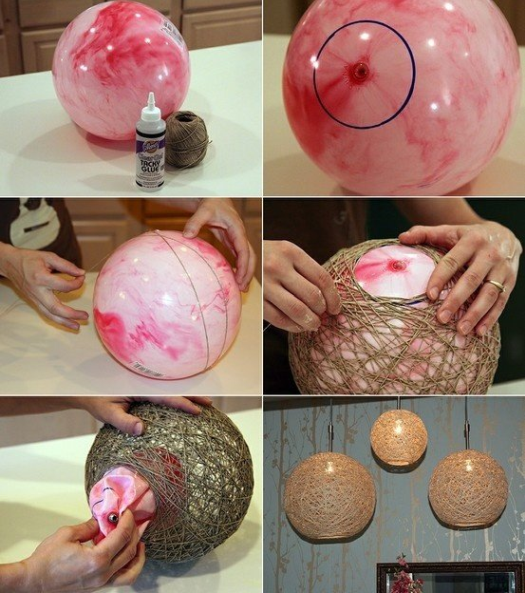 A co udělat nyní? Je to jednodušší, než si myslíte. Z balonku vypusťte vzduch a opatrně ho vyjměte. Díky použité vazelíně se na něj příze napuštěná lepidlem nepřilepí. Když je vyndaný, máte před sebou zajímavé svítidlo vyrobené z příze, které drží svůj kulatý tvar. To poslední, co budete potřebovat, je pouze kabel s žárovkou a vaše dekorační osvětlení je hotové. A kam si ho pověsíte? To je jenom na vás. Možných míst jistě najdete více než dost.