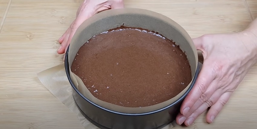Až budete mít těsto hotové, vlijte jej do koláčové kulaté formy vystlané pečícím papírem a dobře rozprostřete. Dort dejte péct do trouby na cca 180 °C po dobu 50 minut.