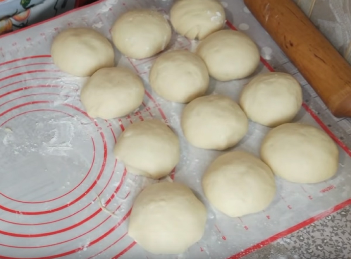 Nyní těsto začněte rozdělovat na stejně velké bochánky. Z daného množství by mělo vzniknout asi 12 kusů. Toto dělení je důležité proto, aby vaše rolky s marmeládou byly stejně velké a tak se rovnoměrně propekly. Tyto bochánky nechte asi 10 minut odpočívat.