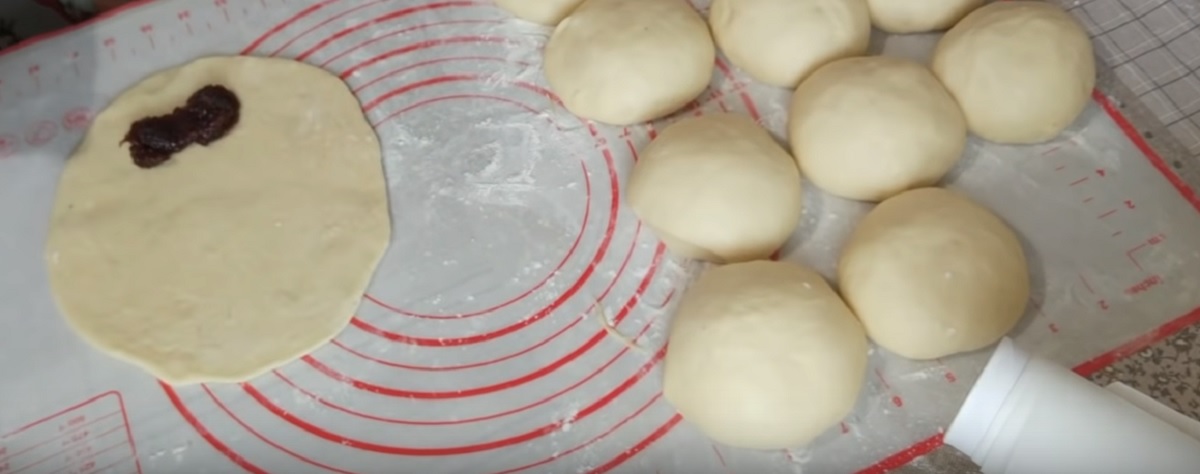 Nyní se můžete pustit do přípravy rolek. Každý bochánek vyválejte na kulatou placku, do které přidejte lžíci marmelády. Následně opatrně zabalte a zarolujte, aby nedošlo k tomu, že by marmeláda vytekla. Rolku hned přendejte na plech vyložený pečicím papírem. Takto pokračujte u všech dalších.