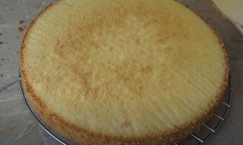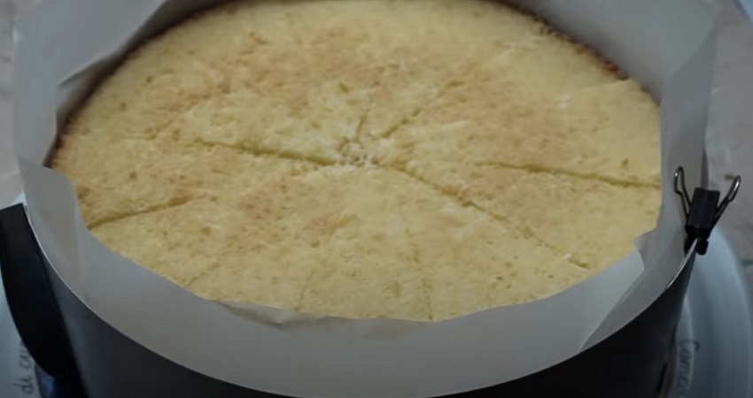Základní formu vyložte pečicím papírem, nalijte těsto a pečte v horní části trouby předehřáté na 30 stupňů po dobu 30 minut. Proveďte test párátkem. Piškot nechte ve formě 10 minut, poté ho můžete z formy vyndat.